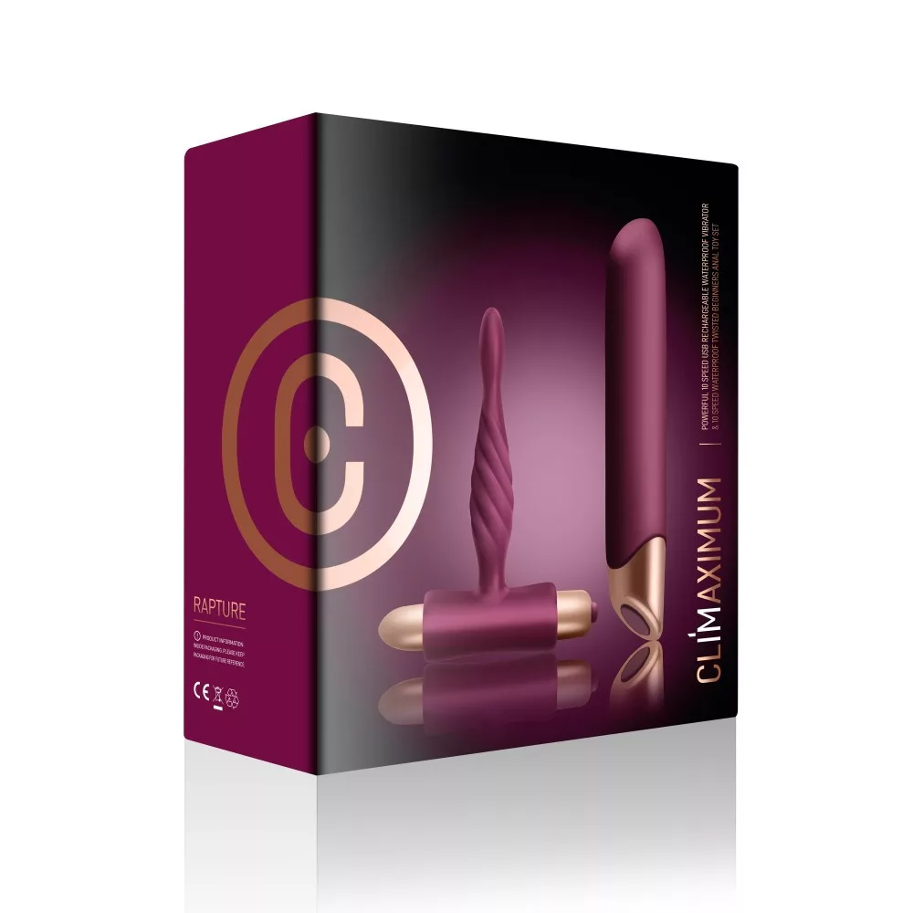 A Rapture szett az egy 10 rezgési fokozattal rendelkező 16 cm hosszú és 3,1 cm átmérőjű Miyana mini vibrátort és egy szintén 10 rezgési fokozattal rendelkező, 12,3 cm hosszú és 2 cm átmérőjű Pharos vibrációs fenékdugót tartalmaz.