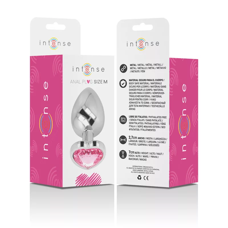 Fedezd fel az érzékek birodalmát az INTENSE Pink Heart anális pluggal! Elegáns alumínium felülete és csábító szíve felfedezésre vár. Élvezd a prémium minőséget, amely minden pillanatot különlegessé varázsol! Az izgalom határtalan – ismerd meg a kényeztetés új dimenzióját!