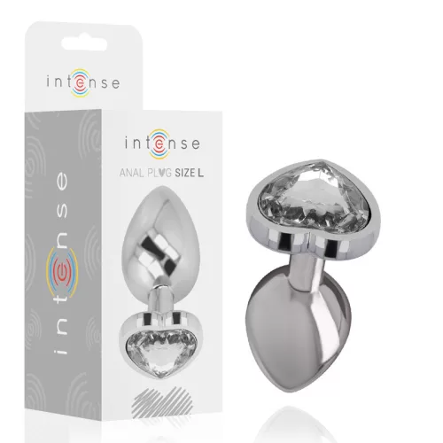 INTENSE – prémium fehér szív alakú fém anál dugó L