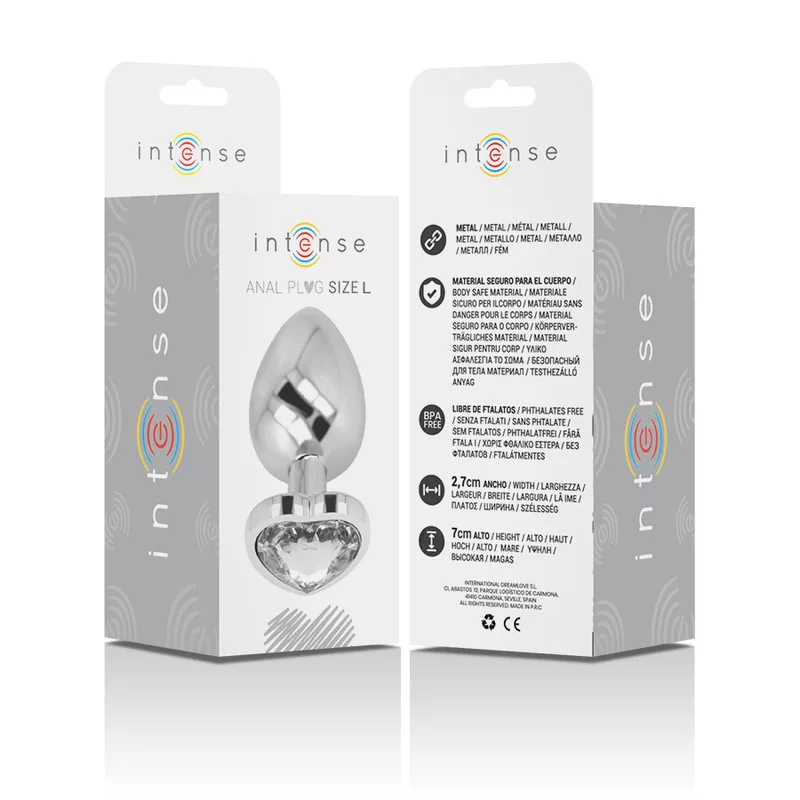Fedezd fel az érzékek határait az INTENSE White Heart anal plug-gal! Elegáns alumínium dizájnja és lenyűgöző mérete garantáltan felejthetetlen pillanatokat nyújt. Kényeztessd magad a prémium minőségű, csillogó szépséggel, ami bármely készlet dísze lehet. Éld át az intimitás új dimenzióit!