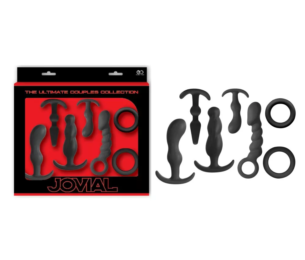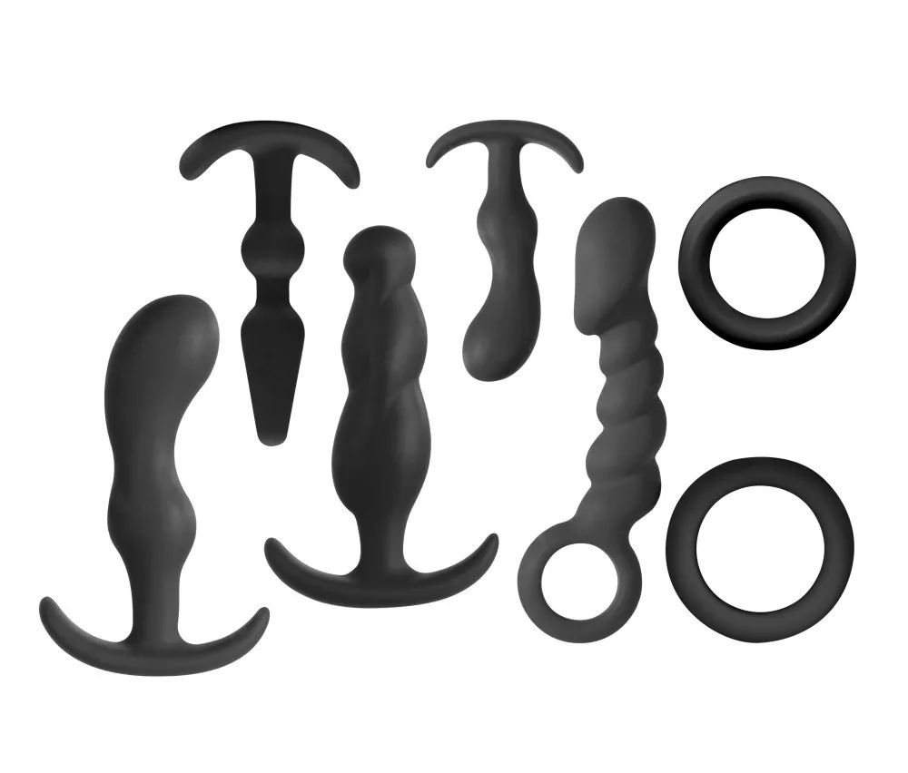 Tartalma: 9 cm hosszú, 2 cm átmérőjű, 8 cm hosszú, 2,3 cm átmérőjű, 11 cm hosszú, 3 cm átmérőjű, 11,5 cm hosszú, 3,2 cm átmérőjű, 11 cm hosszú, 3,5 cm átmérőjű fenékdugó, és két 4,2 cm átmérőjű péniszgyűrű.