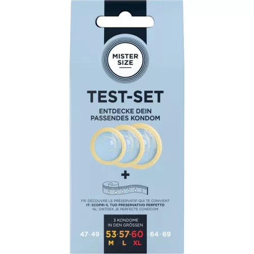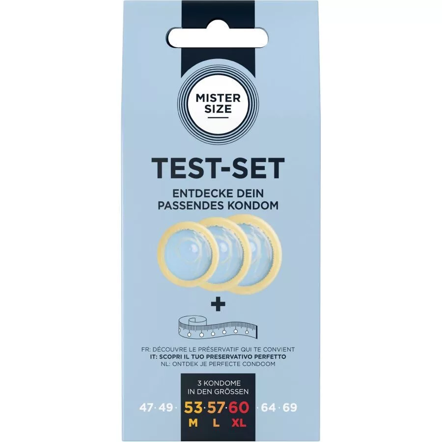 A hét különböző kondom mérettel a MISTER SIZE segít, hogy élvezd a gondtalan és örömteli szexet. A szélesség 47 mm-től 69 mm-ig terjed, a leggyorsabb módja a tökéletes illeszkedés megtalálásának a próbacsomag használata. A MISTER SIZE teljesen új szexuális élményt kínál, miközben optimális biztonságot nyújt. Mert csak így tudsz teljesen ellazulni a szex alatt.