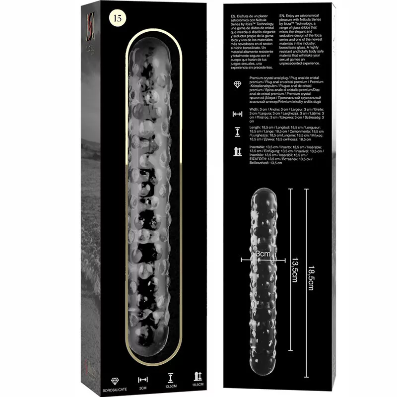Ibiza Nebula 15 – átlátszó üveg dildó 18,5 cm