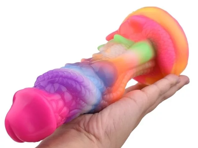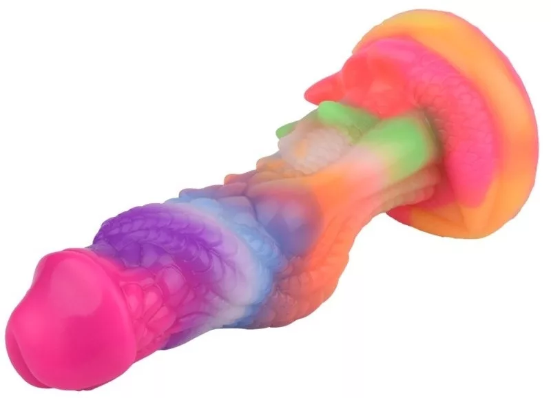 Fedezd fel a színek és formák izgalmas világát! Ez a prémium, texturált szilikon dildó 18 cm-es izgató hosszúságával és különleges formájával garantáltan fellobbantja a vágyakat. Szívókorongja révén könnyen rögzíthető, míg napsütés után ragyogó színei pazar játékélményt kínálnak. Kényeztesd magad a különlegességgel!