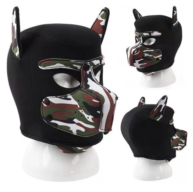 Puppy Neoprene – fekete-kamuflázs maszk kutyás stílusban